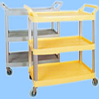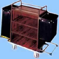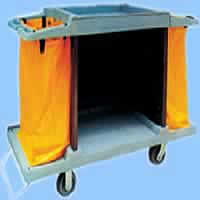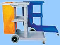 Posee bolsa de vinilo y tres bandejas. Su plataforma delantera permite transportar distintas herramientas de limpieza tales como carros prensa mopa, o contenedores. Fácil de maniobrar en áreas estrechas. Diseño atractivo, ideal para el uso visible.